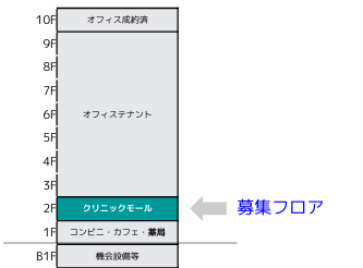 ・商業施設とオフィスの複合ビルの2階 2区画の募集です。