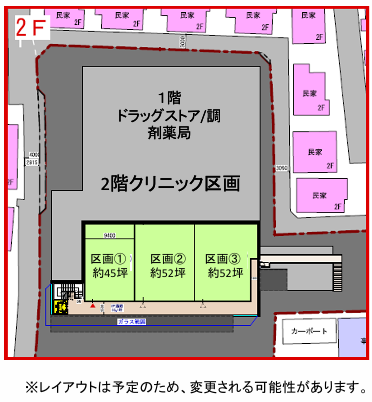 ・集客力のあるドラッグストアが併設するため、早期の認知度向上と