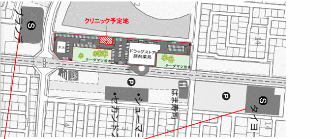 ・集客力の高いドラッグストア併設。早期の認知・集患が期待できます。