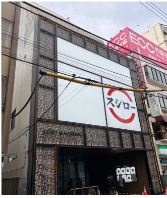 ・2025年春にリニューアルした複合ビル。ファサードに大きく看板の